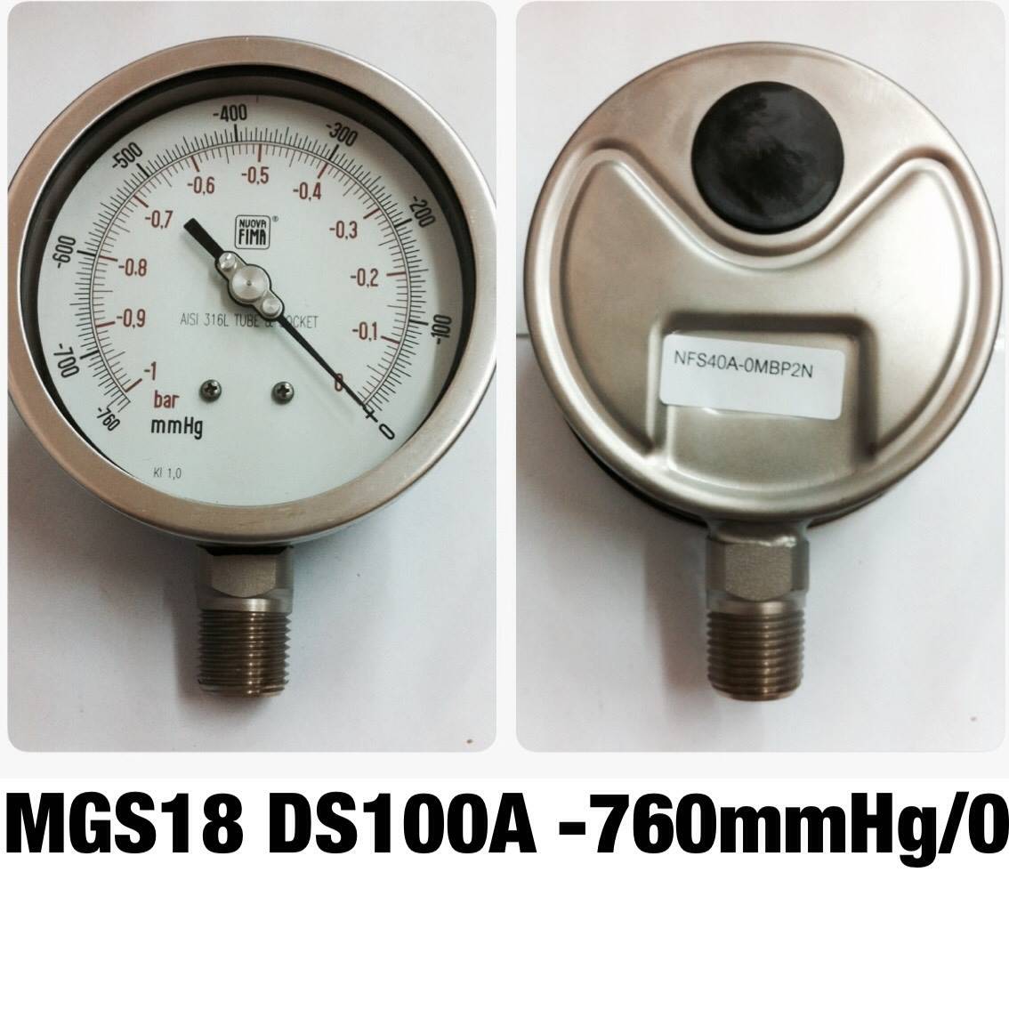 เกจสแตนเลส 4 ออกล่าง แวคคั่ม&คอมพาวเกจ MGS18 DS100A -760mmHH/0