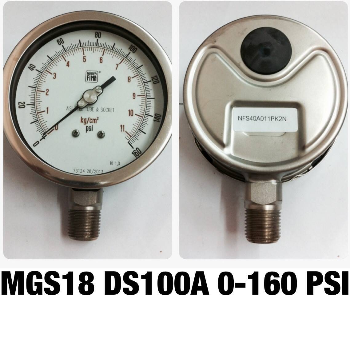 เกจ 4 สแตนเลส ออกล่าง MGS18 DS100A 0-160PSI